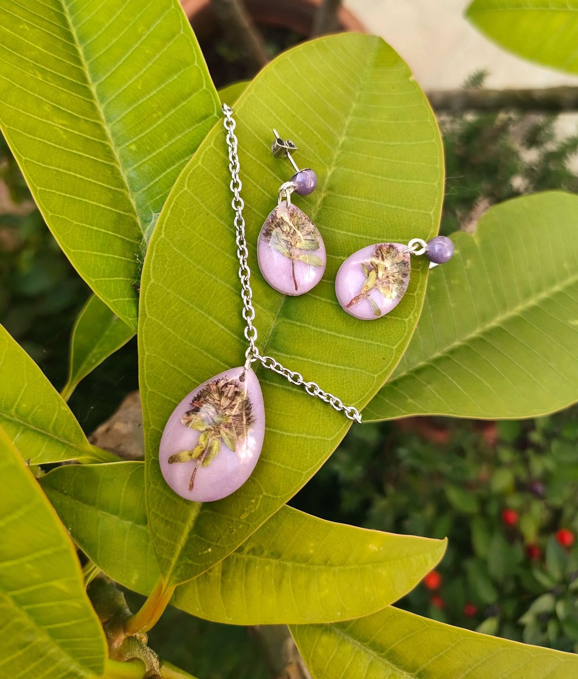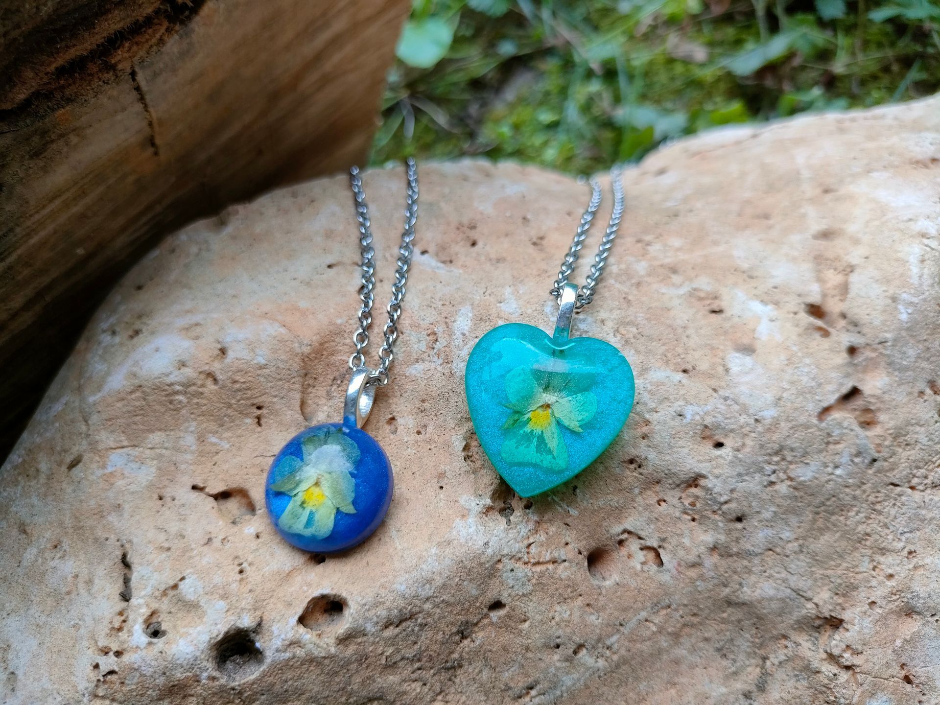 Gemme in resina con fiori e foglie raccolti e essiccati a mano